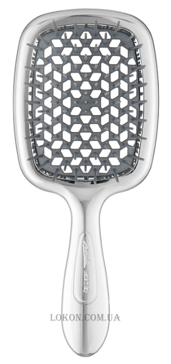 Superbrush Limited Gold бренда Janeke – ця щітка, яка допоможе перетворити болісну процедуру розчісування на справжній сеанс релаксу. Плавні зубчики ніжно масажують шкіру голови, що запобігає виникненню дискомфорту і свербіння, а також провокуючи зростання нових волосків і збільшення густоти ваших пасом. Виріб стане прикрасою вашого туалетного столика і змусить вас почуватися справжньою принцесою. Подаруйте вашому волоссю турботу і догляд, вибираючи тільки якісні інструменти для укладання.