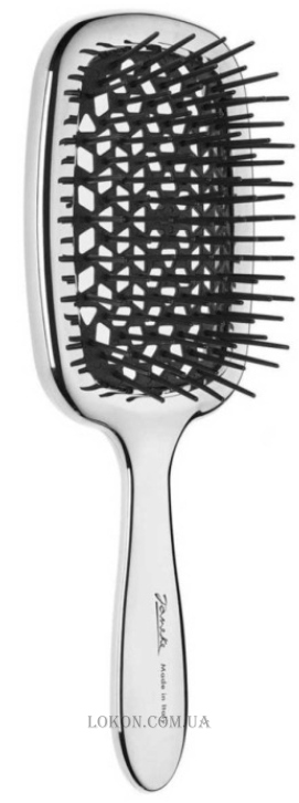 Superbrush Limited Gold бренда Janeke – ця щітка, яка допоможе перетворити болісну процедуру розчісування на справжній сеанс релаксу. Плавні зубчики ніжно масажують шкіру голови, що запобігає виникненню дискомфорту і свербіння, а також провокуючи зростання нових волосків і збільшення густоти ваших пасом. Виріб стане прикрасою вашого туалетного столика і змусить вас почуватися справжньою принцесою. Подаруйте вашому волоссю турботу і догляд, вибираючи тільки якісні інструменти для укладання.